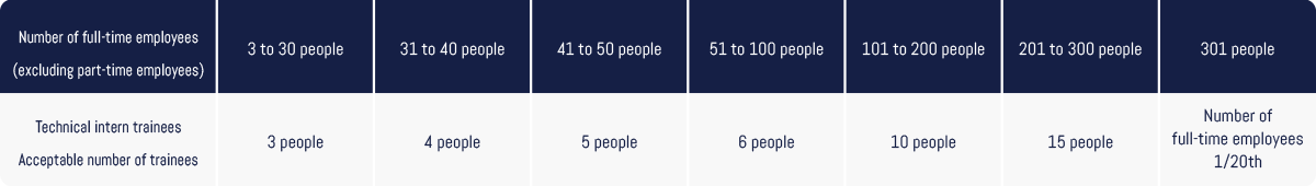 *For nursing care occupations, “full-time employees are limited to those whose main job is nursing care. In addition, if the recipient company is small (with less than 30 full-time employees), the maximum number of recipients per year is limited to 10% of the number of full-time employees.