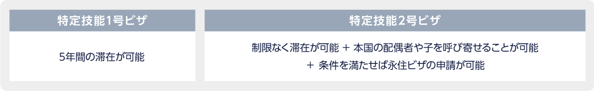 在留期間や家族の帯同、単純労働の可否という点に違いがあります。